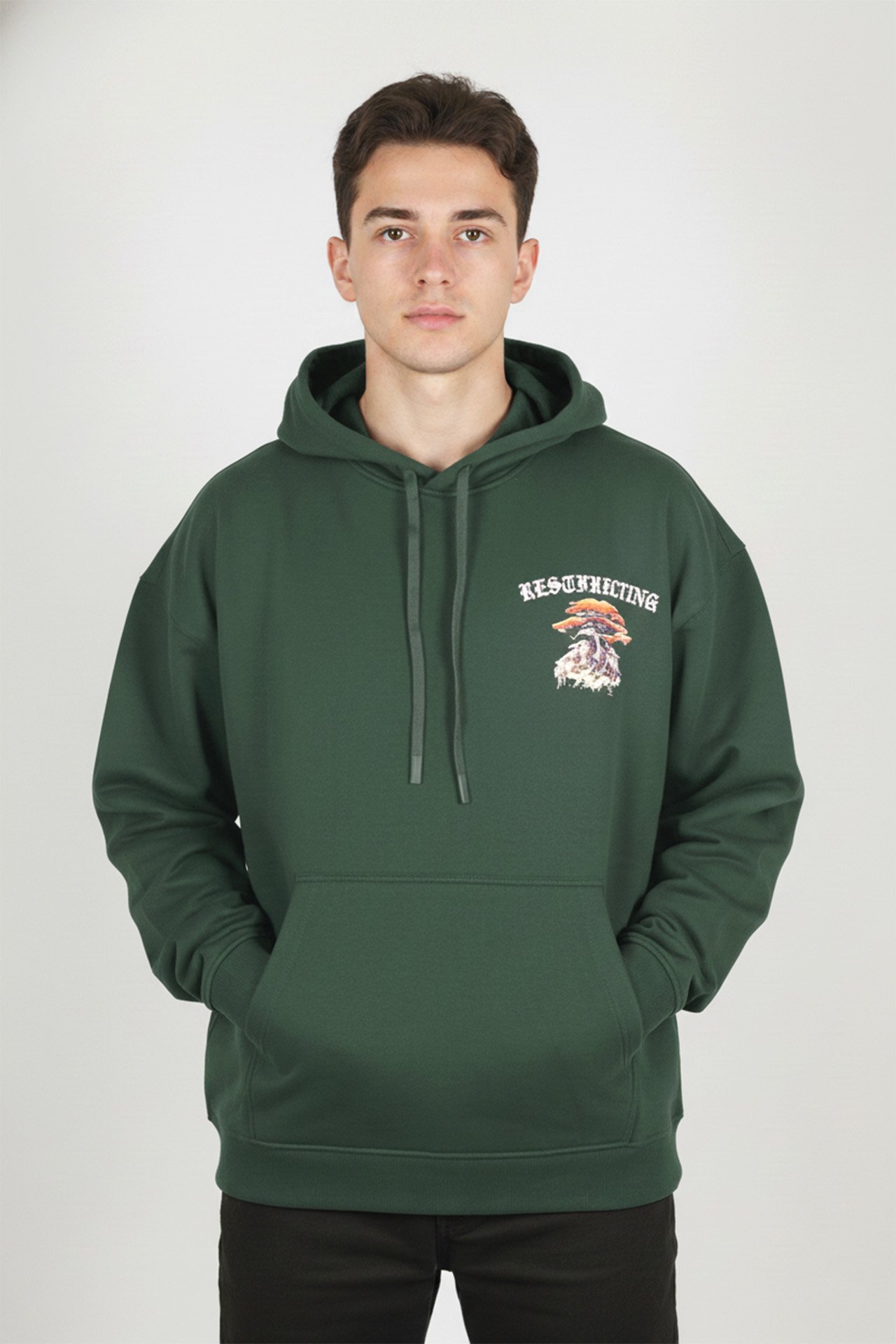 Crafted from high-quality heavyweight cotton, it offers a soft yet durable feel that keeps you cozy during cooler days while maintaining a structured look. The olive green tone adds a touch of natural sophistication, making it easy to pair with joggers, denim, or layered streetwear looks.